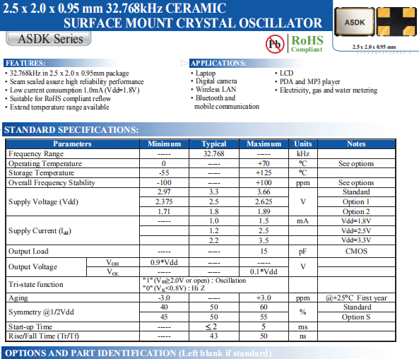 | 頻率老化 | f_age | ±5 × 10-6 / year Max. | +25°C,第一年 |