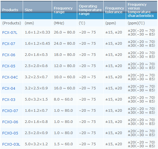 | 晶振參數表 | 石英晶體諧振器FCX-07L | |