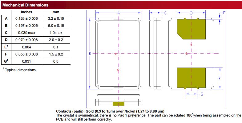 CX532Z-A5B3C5-70-25.0D18,Cardinal輕薄型晶振,5032mm諧振器,物聯(lián)網(wǎng)晶振,尺寸圖