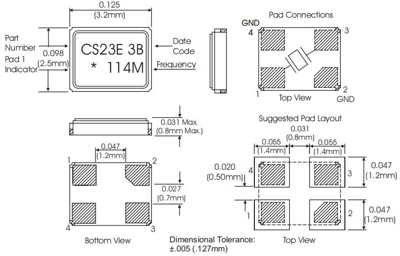 CS-023E-114.285M,康納溫菲爾德晶振,6G以太網晶振尺寸圖