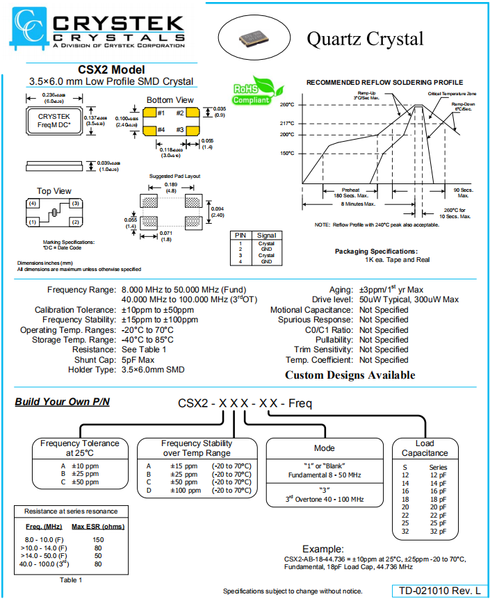 | CRYSTEK晶振 | 單位 | CSX2晶振 | 石英晶振基本條件 |