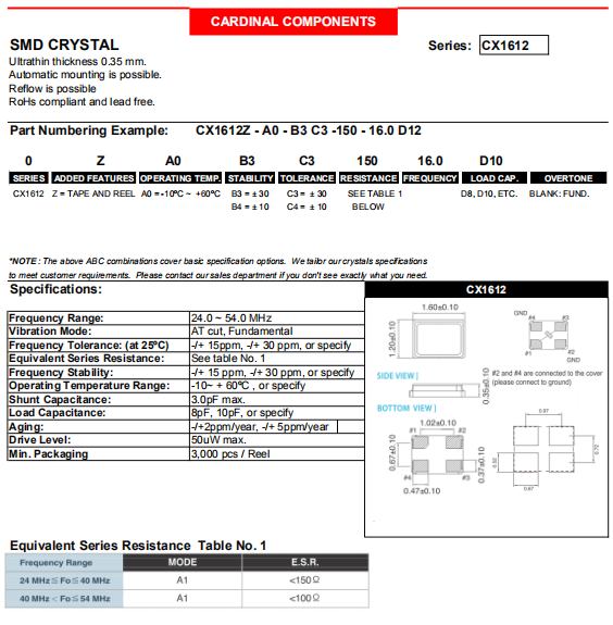 | Cardinal晶振 | 單位 | CX1612晶振 | 石英晶振基本條件 |