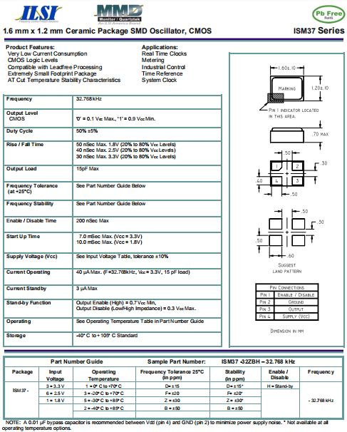 ILSI晶振,ISM37晶振,CMOS輸出振蕩器.普通貼片石英晶振外觀使用金屬材料封裝的,具有高穩定性,高可靠性的石英晶體振蕩器,晶振外觀本身使用金屬封裝,充分的密封性能,可確保其高可靠性,采用編帶包裝,外包裝采用朔膠盤,可在自動貼片機上對應自動貼裝等優勢