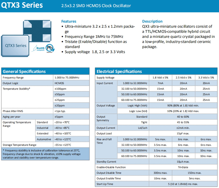 f_tol | ±20ppm,±25ppm,±50pm,±100ppm |