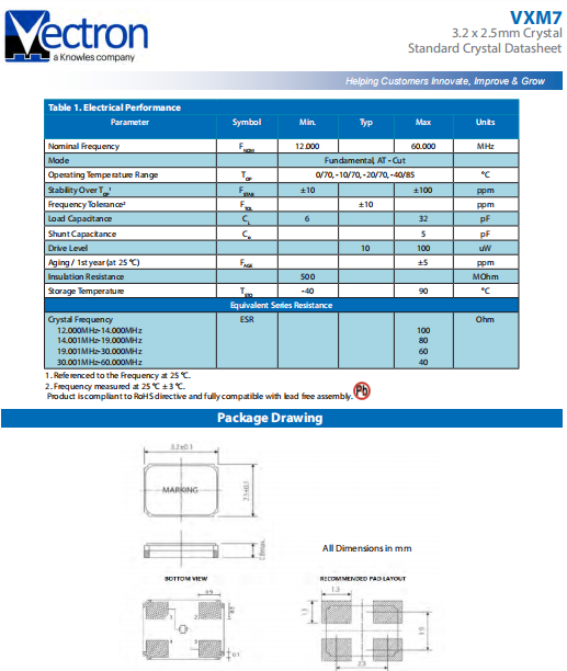 VECTRON晶振,VXM7晶振,高質量晶振.貼片晶振本身體積小,超薄型石英晶體諧振器,特別適用于有目前高速發展的高端電子數碼產品,因為石英晶振本身小型化需求的市場領域,小型,薄型是對應陶瓷諧振器(偏差大)和普通的石英晶體諧振器(偏差小)的中間領域的一種性價比較出色的產品.產品廣泛用于筆記本電腦,無線電話,衛星導航HDD,SSD,USB,Blu-ray等用途,符合無鉛焊接的高溫回流焊曲線特性.