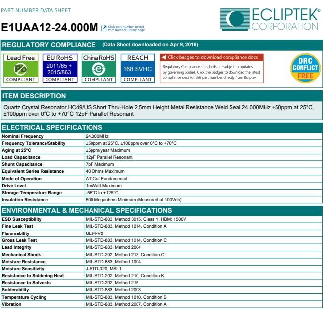 ECLIPTEK晶振,E1UAA12-24.000M晶振,插件石英晶振,石英晶振高精度晶片的拋光技術:貼片晶振是目前晶片研磨技術中表面處理技術的最高技術,最終使晶振晶片表面更光潔,平行度及平面度更好,降低諧振電阻,提高Q值.從而達到一般研磨所達不到的產品性能,使石英晶振的等效電阻等更接近理論值,使晶振可在更低功耗下工作.使用先進的牛頓環及單色光的方法去檢測晶片表面的狀態.
