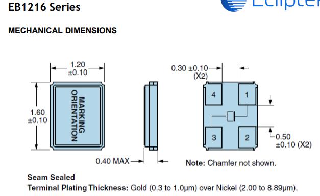 EB1216YA10-32.000M-TR無源晶體,美國進口晶振品牌日蝕EB1216 尺寸圖
