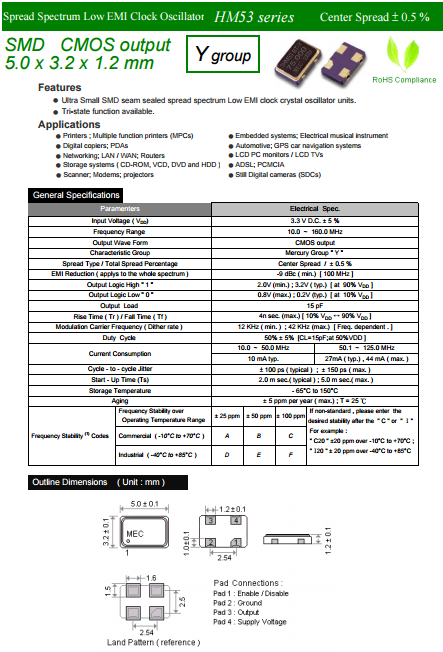 MERCURY晶振,Oscillator,HM53Y振蕩器.貼片有源石英晶振是指在普通無源晶體上增加了電壓,內部集成了相應IC與電容電阻,需要在凈化萬級車間生產,并且在密封機器設備中焊接加蓋,內部封裝模式是指在真空封裝區域內進行封裝.1.防止外界氣體進入組件體內受到污染和增加應力的產生;2.使組件在真空下電阻減小;3.氣密性高.此技術為研發及生產超小型,超薄型石英晶體元器必須攻克的關鍵技術之一.