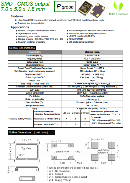 MERCURY晶振,MERCURY晶體振蕩器,HM572P有源晶體.石英晶體振蕩器在設(shè)計時就與各款型號IC匹配等相關(guān)技術(shù),使用IC與晶片設(shè)計匹配技術(shù):是高頻振蕩器研發(fā)及生產(chǎn)過程必須要解決的技術(shù)難題.在設(shè)計過程中除了要考慮石英晶體諧振器具有的電性外,還有石英晶體振蕩器的電極設(shè)計等有它的特殊性,必須考慮振蕩器的供應(yīng)電壓,起動電壓和產(chǎn)品上升時間,下降時間等相關(guān)參數(shù).
