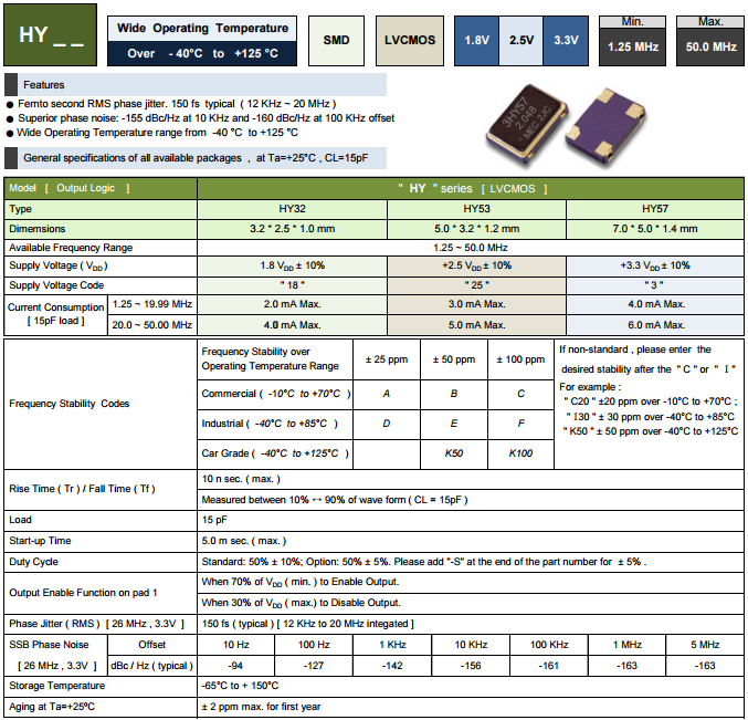 MERCURY晶振,有源晶振,HY32晶振,小體積有源晶體振蕩器.3225mm體積非常小的SMDcrystal器件,是民用小型無線數(shù)碼產(chǎn)品的最佳選擇,小體積的晶振被廣泛應用到,手機藍牙,GPS定位系統(tǒng),無線通訊集,高精度和高頻率的穩(wěn)定性能,非常好的減少電磁干擾的影響,是民用無線數(shù)碼產(chǎn)品最好的選擇,符合RoHS/無鉛.