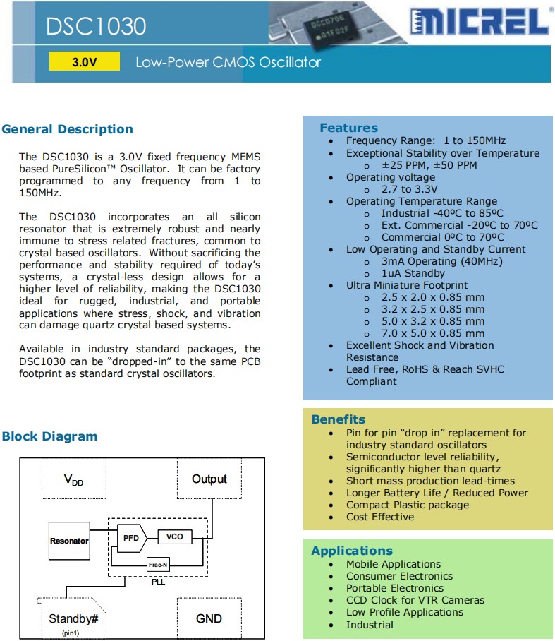 | DSC1030DI1-030.0000T | Microchip晶振 | DSC1030 | 30MHz | 3V |