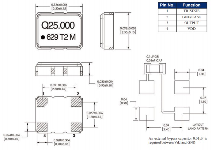 ●小尺寸,3.2×2.5mm表貼封裝