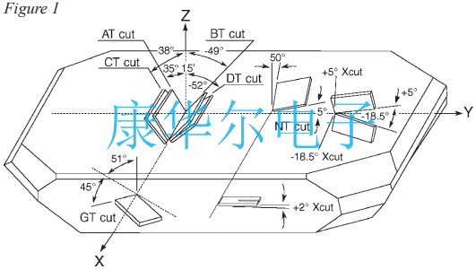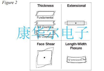 如上所示的元素以各種模式振動,其中最重要的是伸展的,彎曲的和剪切.振動模式?jīng)Q定了晶振最大頻率,穩(wěn)定性與溫度,和給定元素的阻力.各種模式振動如圖2所示,同時進(jìn)行比較各種頻率穩(wěn)定性與溫度有關(guān)如圖3所示.