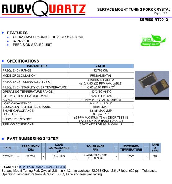 | FREQUENCY RANGE | 32.768 KHz |