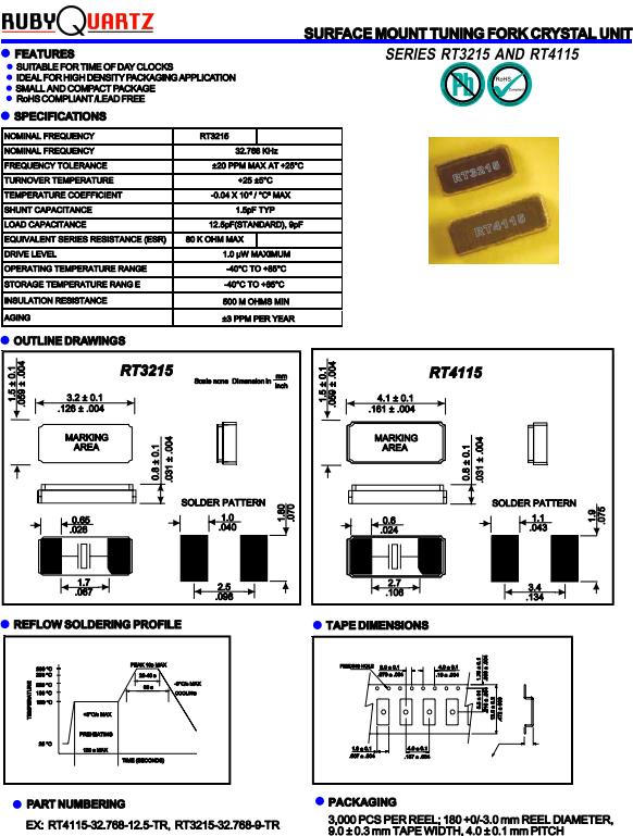 Rubyquartz歐美晶振,RT3215石英晶體,RT3215-32.768K-9-TR諧振器,美國Rubyquartz晶振擁有完整的諧振器與振蕩器產(chǎn)線-Rubyquartz晶振公司是美國有名的頻率控制元件制造商,在各大用戶眼里,是一家注重服務(wù)與質(zhì)量的晶振品質(zhì).