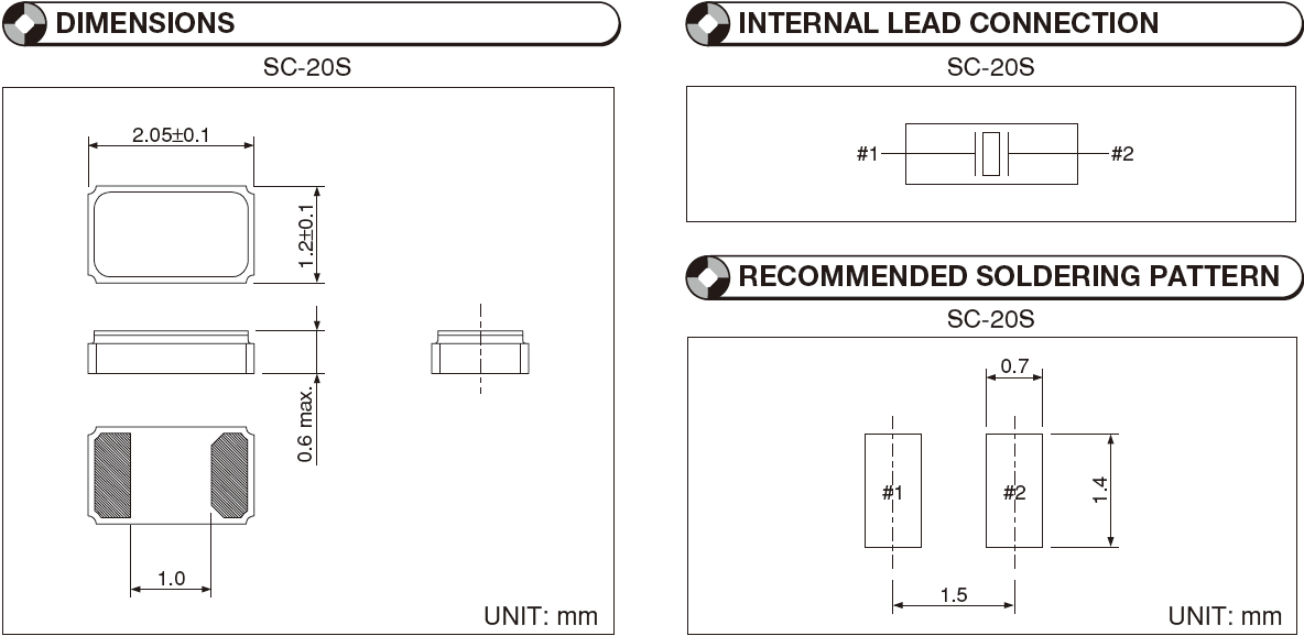 Q-SC20S03220C5AAAF,32.768KHz,2012,12.5pF,±20ppm,超小型晶振,SC-20S 尺寸圖