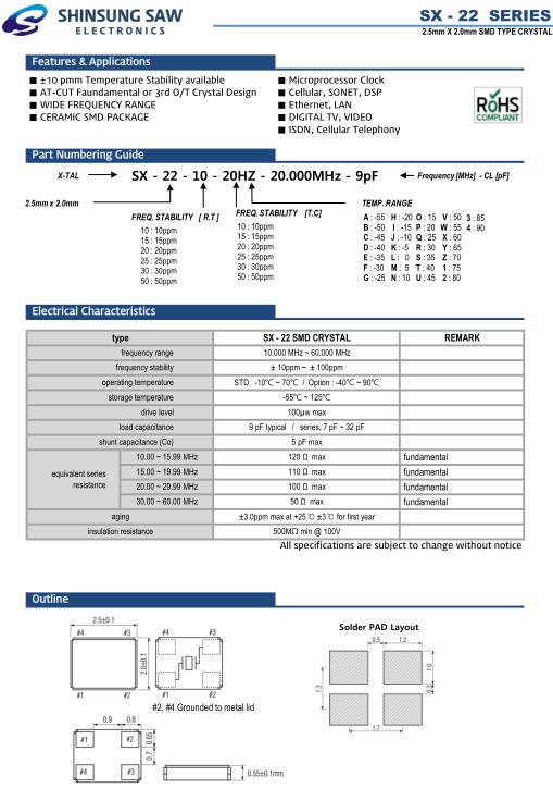 | type | SX - 22 SMD CRYSTAL | REMARK | |