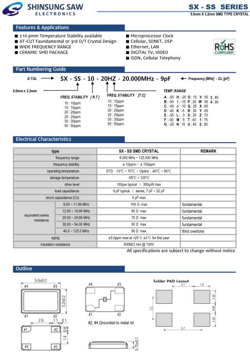 SHINSUNG晶振,SX-SS無源晶體,SX-SS-10-20HZ-16.000MHz-6pF晶振,智能手機(jī)晶振,產(chǎn)品具有高精度超小型的表面貼片型石英晶體振蕩器,最適用于移動(dòng)通信終端的基準(zhǔn)時(shí)鐘等移動(dòng)通信領(lǐng)域.比如智能手機(jī),無線通信,衛(wèi)星導(dǎo)航,平臺(tái)基站等較高端的數(shù)碼產(chǎn)品,晶振本身小型,薄型具備各類移動(dòng)通信的基準(zhǔn)時(shí)鐘源用頻率,貼片晶振具有優(yōu)良的電氣特性,耐環(huán)境性能適用于移動(dòng)通信領(lǐng)域,滿足無鉛焊接的高溫回流溫度曲線要求.