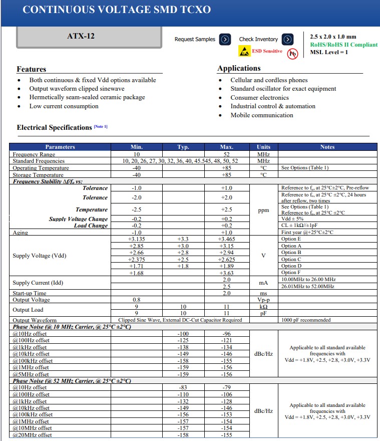 TCXO振蕩器ATX-12C-26.000MHz-F05-T3適合低功耗6G路由器應用