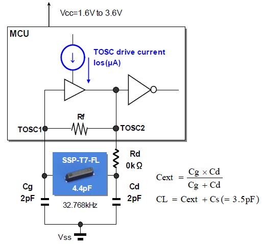 各種邏輯芯片的晶振引腳可以等效為電容三點(diǎn)式振蕩器. 晶振引腳的內(nèi)部通常是一個(gè)反相器, 或者是奇數(shù)個(gè)反相器串聯(lián). 在晶振輸出引腳 XO 和晶振輸入引腳 XI 之間用一個(gè)電阻連接, 對于 CMOS 芯片通常是數(shù) M 到數(shù)十 M 歐之間. 很多芯片的引腳內(nèi)部已經(jīng)包含了這個(gè)電阻, 引腳外部就不用接了. 這個(gè)電阻是為了使反相器在振蕩初始時(shí)處與線性狀態(tài), 反相器就如同一個(gè)有很大增益的放大器, 以便于起振. 石英晶體也連接在晶振引腳的輸入和輸出之間, 等效為一個(gè)并聯(lián)諧振回路, 振蕩頻率應(yīng)該是石英晶體的并聯(lián)諧振頻率. 晶體旁邊的兩個(gè)電容接地, 實(shí)際上就是電容三點(diǎn)式電路的分壓電容, 接地點(diǎn)就是分壓點(diǎn). 以接地點(diǎn)即分壓點(diǎn)為參考點(diǎn), 振蕩引腳的輸入和輸出是反相的, 但從并聯(lián)諧振回路即石英晶體兩端來看, 形成一個(gè)正反饋以保證電路持續(xù)振蕩. 在芯片設(shè)計(jì)時(shí), 這兩個(gè)電容就已經(jīng)形成了, 一般是兩個(gè)的容量相等, 容量大小依工藝和版圖而不同, 但終歸是比較小, 不一定適合很寬的頻率范圍. 外接時(shí)大約是數(shù) PF 到數(shù)十 PF, 依頻率和石英晶體的特性而定. 需要注意的是: 這兩個(gè)電容串聯(lián)的值是并聯(lián)在諧振回路上的, 會影響振蕩頻率. 當(dāng)兩個(gè)電容量相等時(shí), 反饋系數(shù)是 0.5, 一般是可以滿足振蕩條件的, 但如果不易起振或振蕩不穩(wěn)定可以減小輸入端對地電容量, 而增加輸出端的值以提高反饋量, 一般芯片的 Data sheet 上會有說明 ,時(shí)鐘晶體表晶,32.768K系列,現(xiàn)在國外設(shè)計(jì)開發(fā)都以小負(fù)載電容為主了,因?yàn)樾∝?fù)載電容,可以減少電流電壓的流量,表晶線路使用小負(fù)載電容也可以使電池使命延長,可以參考康華爾電子官方網(wǎng)站技術(shù)資料下載低電容匹配技術(shù)。