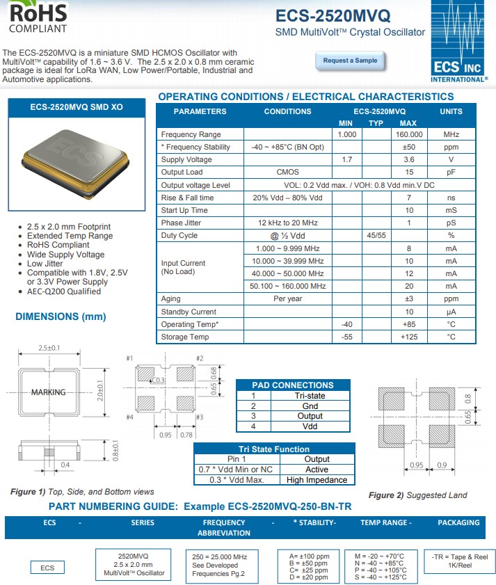 更多>>ECS-2520MVQ-1250-BS-TR多電壓晶振非常適合汽車和物聯(lián)網(wǎng)應(yīng)用