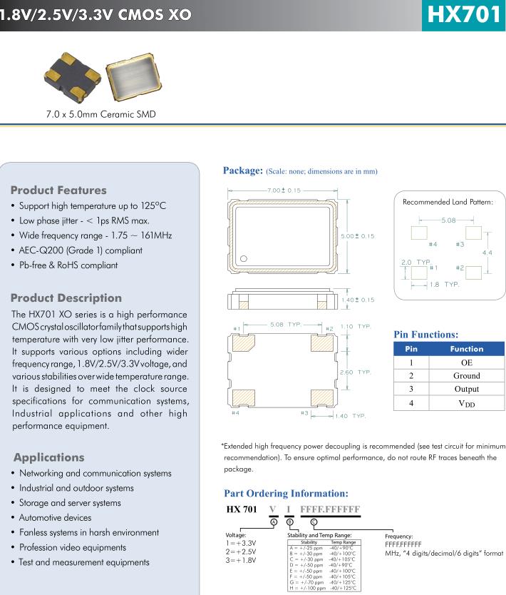 更多>>亞陶生產的高品質XO振蕩器HX7011C0020.000000,廣泛用于戶外系統