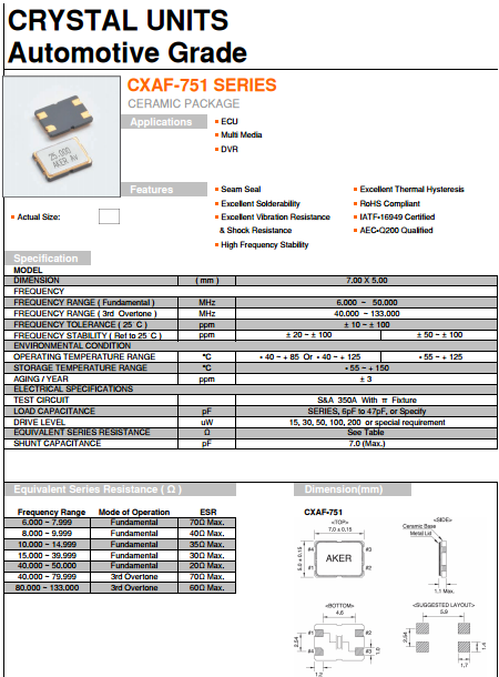 AKER晶振,CXA-016000-7B6A60晶振,CXAF-751石英晶振.晶體內部石英晶片均采用了全自動壓電石英晶片清洗技術,采用高壓噴淋清洗,兆聲振動的原理,一個全自動,清洗過程由PLC控制,由傳輸裝置,噴淋清洗段,噴淋漂洗段,風力吹水段等, 操作自動化程度高,除上下工件需要人工外,其余全部由設備自動完成.根據需要,對速度,溫度,時間等參數進行調整,使之最大限度的滿足工藝需要.能最大限度除去晶片污染物,并防止人工污染.