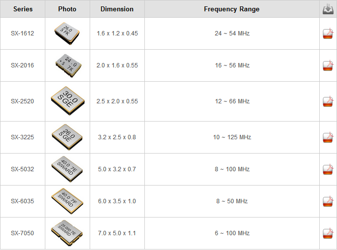| 晶振目錄 | 希華貼片晶振型號SX-3225mm | |