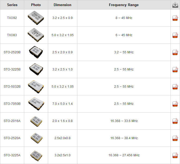 | 標(biāo)稱頻率(MHz) | 8, 10, 12, 12.8, 13, 14.4, 16.368, 19.2, 19.8, 20, 24.5535, 26, 40 | ||